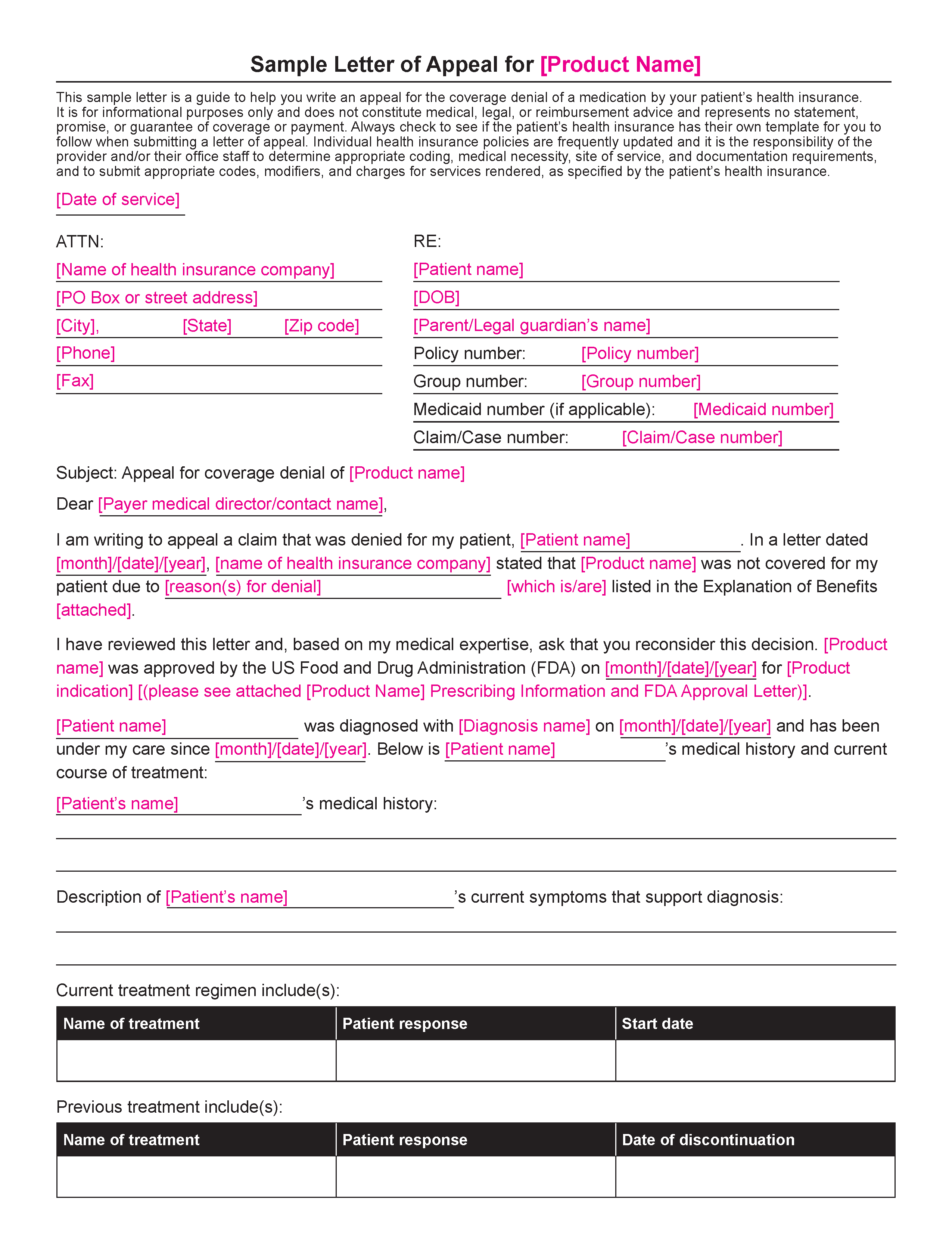 SAMPLE VOICE OF THE PATIENT LETTER OF APPEAL