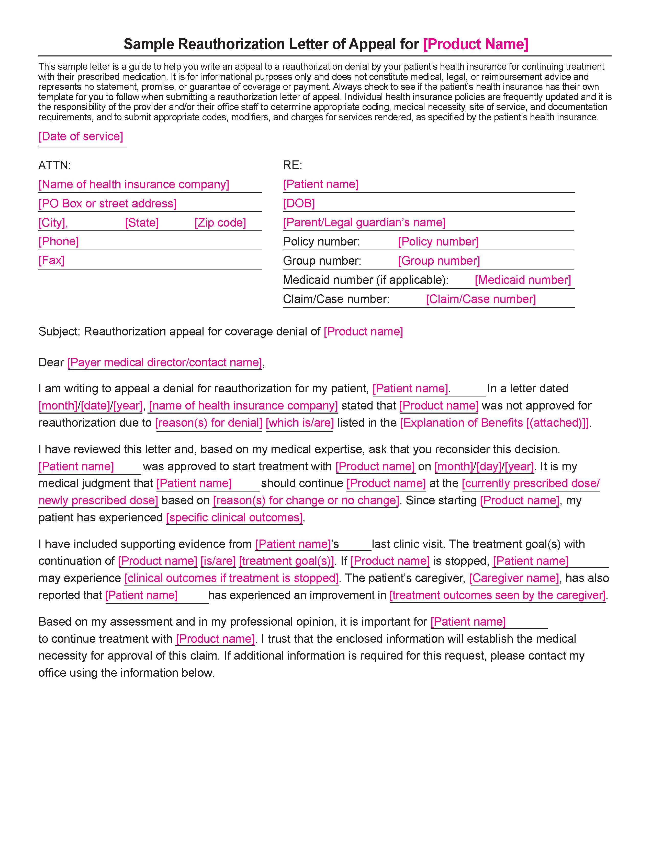 SAMPLE REAUTHORIZATION LETTER OF APPEAL